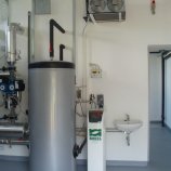 izvedba plinske kotlovnice 400 KW s kondenzacijskimi plinskimi kotli Logamax Buderus, montaža nerjavečega dimnika, izvedba centralnega in talnega ogrevanja ter vodovoda v novih pisarniških prostorih TE
